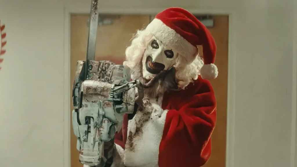 Terrifier 3: Vu le tournant que prenait Terrifier 2, autant vous dire que je n’avais aucune attente concernant ce troisième volet! Suite directe du métrage précédent, nous retrouvons ici les personnages de Sienna Shaw, son frère Jonathan ainsi que Victoria Heyes, la rescapée du premier film (toujours interprétés par les mêmes acteurs). Même si bien sûr, la vraie star du film, c’est évidemment Art le Clown (toujours aussi génialement interprété)! Moins de personnages donc et un métrage plus court avec un rythme bien mieux géré, ce qui est déjà une très bonne chose en soi! L’autre gros point fort de cette suite est de renouer avec le côté vicelard et malsain du premier film, aspect qu’avait un peu perdu de vue Terrifier 2 pour se concentrer sur une pseudo mythologie qui n’apportait pas une grosse plus value. Question gore et inventivité, le métrage est tellement généreux que plusieurs personnes ont quitté la salle malgré une rarissime interdiction -18 qui n’aura échappé à personne (clairement méritée d’ailleurs). Le (mémorable) climax final synthétisant parfaitement ces deux points. Question clins d’oeil, on pensera tour à tour à Shining, The House on Sorority Row, Evil Dead2. Tom Savini himself fait même un caméo! Et ça tombe bien car, encore une fois, les FX à l’ancienne sont à tomber! Placer le récit au moment de Noël crée un contraste intéressant avec les scènes de meurtre et focaliser sur le trauma des survivants leur donne un peu de profondeur. Il semblerait que Damien Leone a retenu la leçon d’un Terrifier 2 assez tiédasse. On relèvera par contre quelques incohérences mais rien de vraiment gênant. Mais même si ce Terrifier 3 s’impose comme une suite très honnête, je ne suis pas certain qu’il faille en passer par un Terrifier 4 voire 5 (comme Leone le souhaiterait) pour clore cette saga de slasher/splatter en beauté…